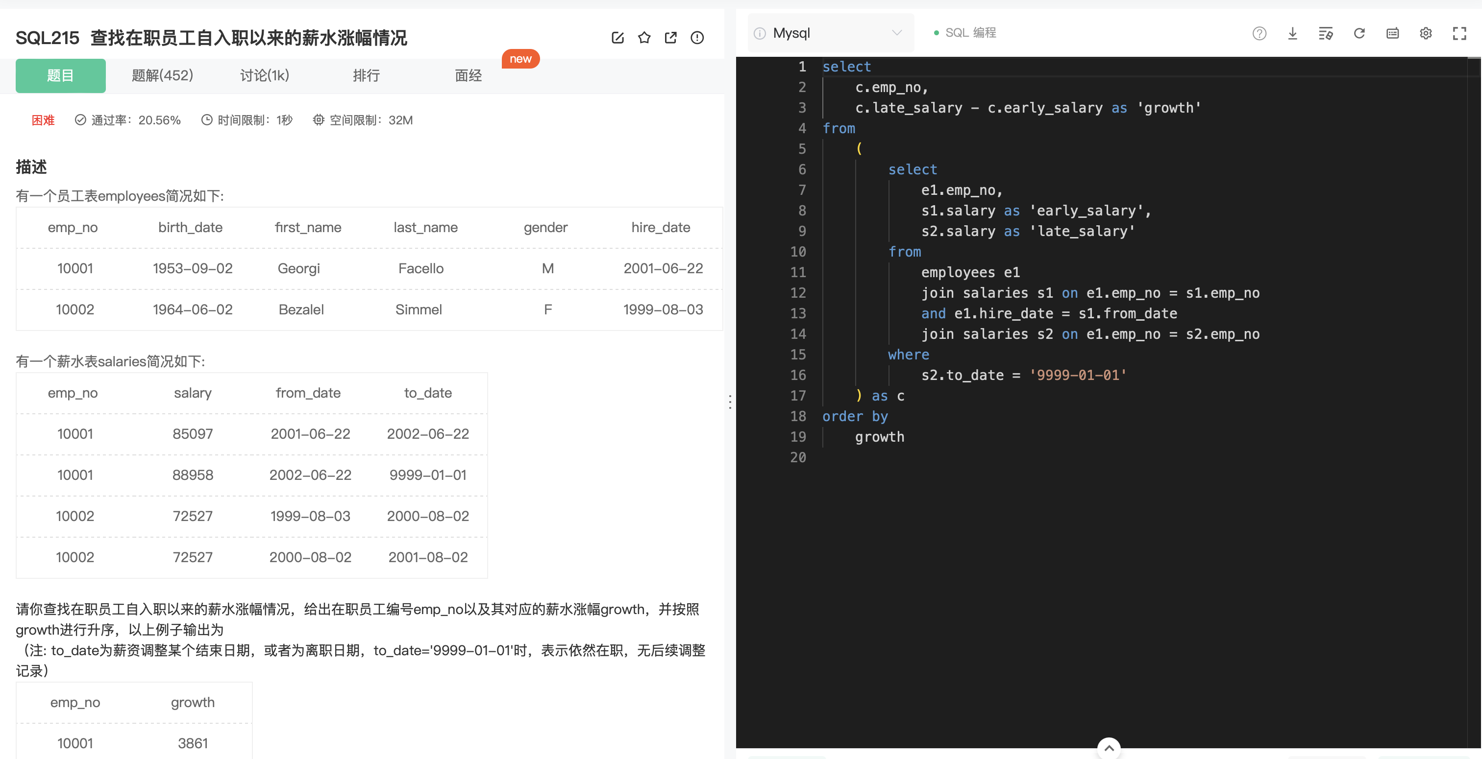 de.emp_no被重命名为dept_emp_no。s.emp_no被重命名为salary_emp_no。