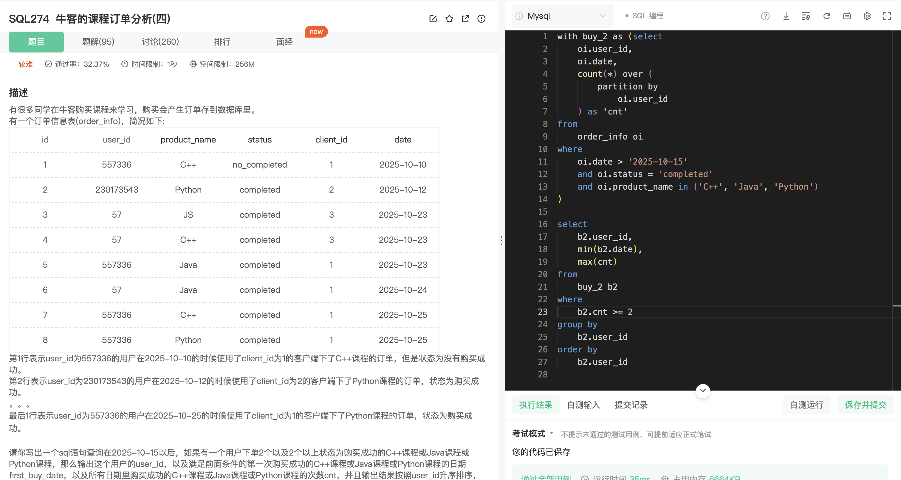 输出表以 improvement_score 降序排序,然后以 name 升序排序。