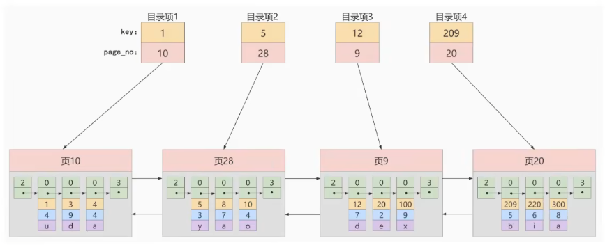 B+树 = 数据页(叶子节点) + 目录页(内节点)